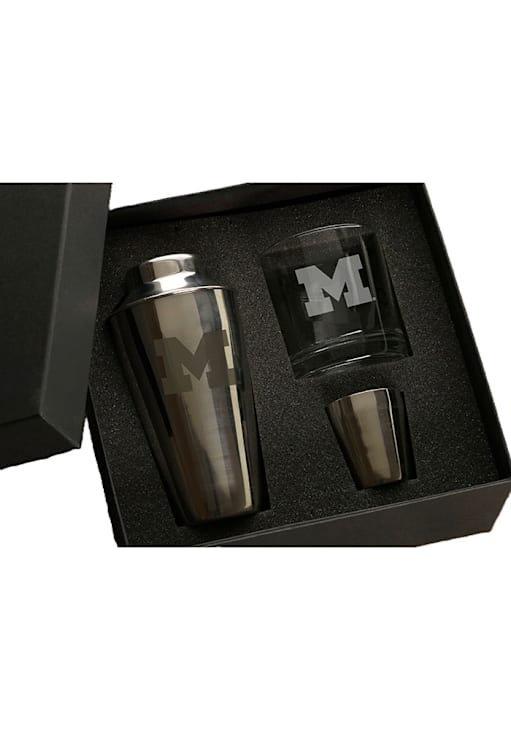 - Elevate your mixology game with a professional-style cocktail shaker and matching rocks glass, both featuring laser-engraved logos