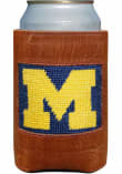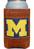 Product Details Product Details 100% hand-stitched needlepointFrench cotton threadFull grain Italian leatherNeoprene liner4.25" wide x 5" high Officially Licensed This Michigan Wolverines Coolie is great for keeping your drink cold and showing your Wolverines spirit. Cheer on the Wolverines with this Coolie, which features a brown leather wrapped with team logo and team colors.