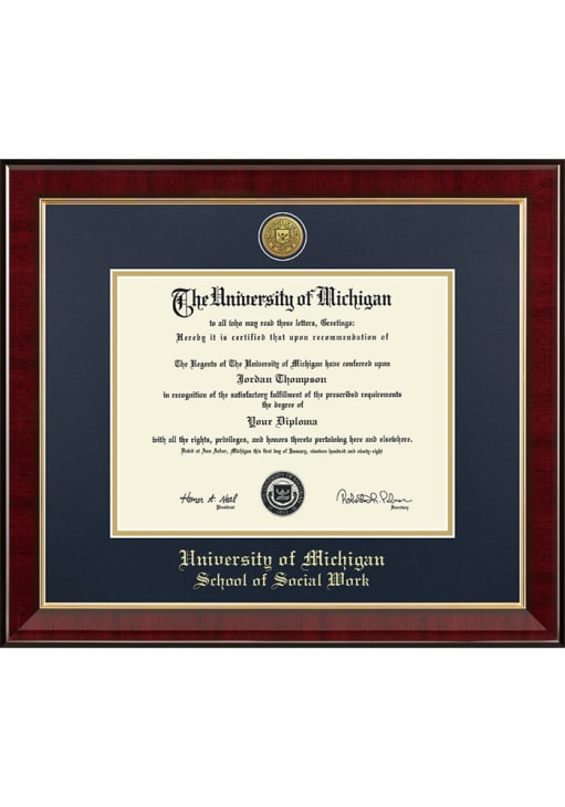 Michigan Wolverines Medallion Murano School of Social Work Diploma Frame is a great way to keep your Wolverines memories close. You'll love looking at your favorite Wolverines moments with this Diploma Frame, which features a Showcase for your university diploma frame. Go Michigan!