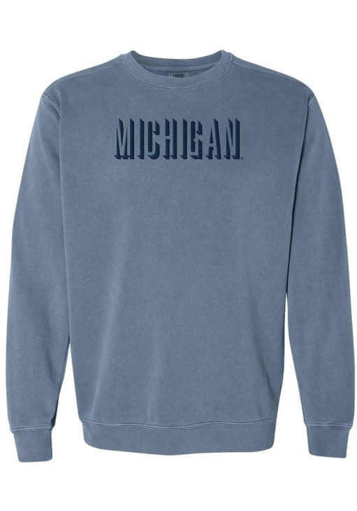 Size Chart for Mens Blue Michigan Wolverines Team Name Crew Sweatshirt