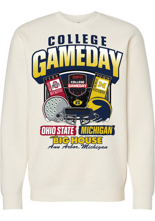 Mens Michigan Wolverines Ivory Something Inked College Gameday vs Ohio State Crew Sweatshirt
