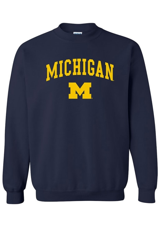 Gear up for the ultimate game day experience with this remarkable Michigan WolverinesMens Navy Blue Arch Logo Crew Sweatshirt! Designed with the true fan in mind, this Wolverines Long Sleeve Crew Sweatshirt features a team graphic on front. Stay warm and comfortable with this Mens Michigan Wolverines Crew Sweatshirt.
