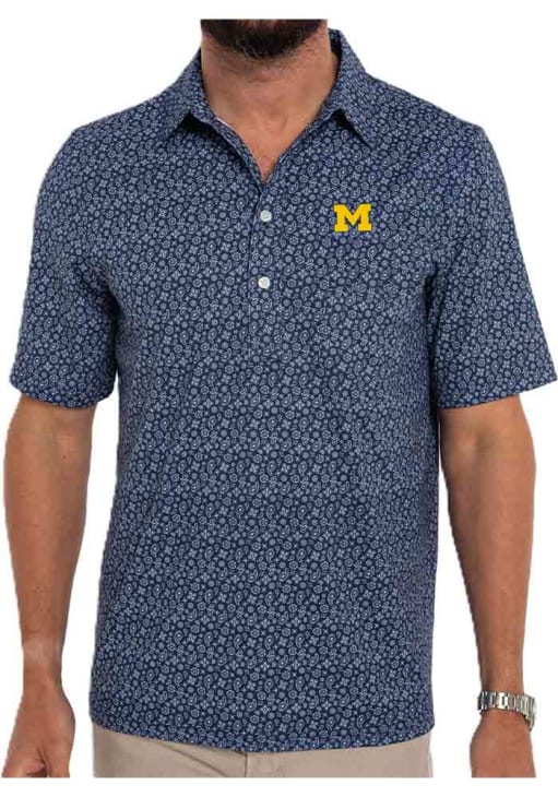 Product Details Product Details Your little Michigan Wolverines fan will be the cutest at the game in this Navy Blue Michigan Wolverines Bandana Print Fashion Polo. This Bandana Print Fashion Polo features a team logo on left chest.
