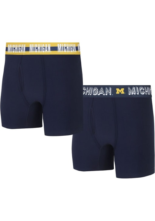 Product Details Product Details Sublimated elastic waistband with team nameTeam colorComfy spandex and poly material2-packContrast color waistbandFit: True to Size92% POLY/8% SPANDEXMachine WashableImported Officially Licensed Dress in Wolverines spirit and pride with these Mens Navy Blue Gauge Knit Boxer Shorts. These Boxers feature a sublimated elastic waistband.