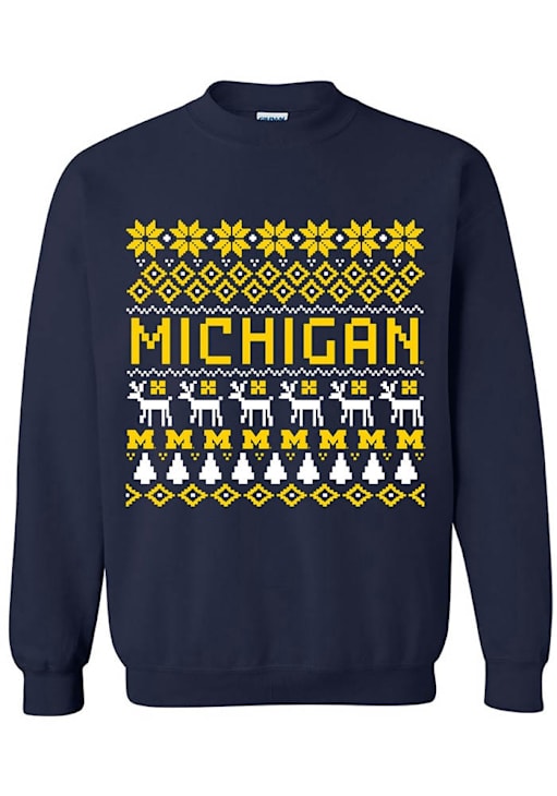 Gear up for the ultimate game day experience with this remarkable Michigan WolverinesMens Navy Blue Holiday Sweater Crew Sweatshirt! Designed with the true fan in mind, this Wolverines Long Sleeve Crew Sweatshirt features a Front and back graphic. Stay warm and comfortable with this Mens Michigan Wolverines Crew Sweatshirt.