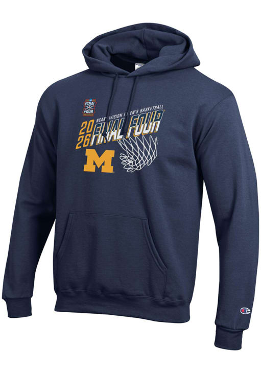 Mens Michigan Wolverines Navy Blue Champion MBB Final Four 2026 Powerblend Hooded Sweatshirt