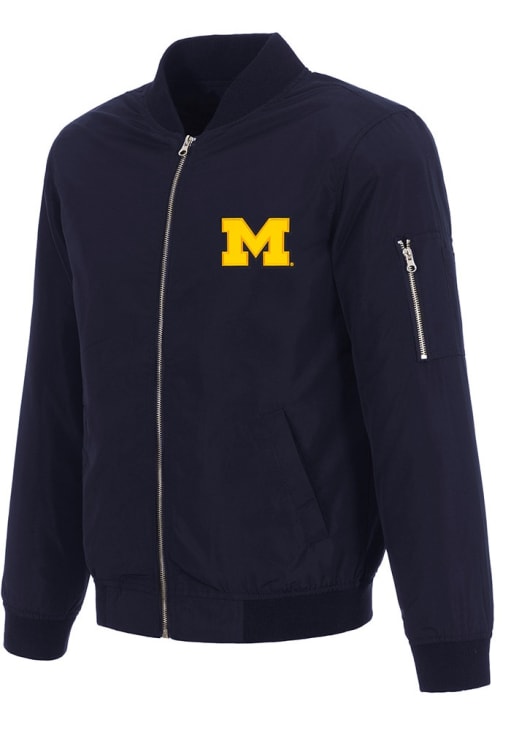 Size Chart for Mens Navy Blue Michigan Wolverines Nylon Bomber Medium Weight Jacket