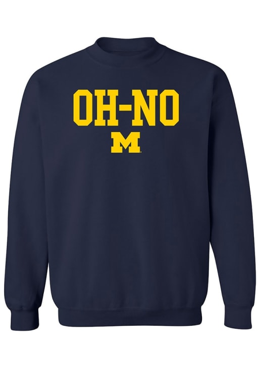 Gear up for the ultimate game day experience with this remarkable Michigan WolverinesMens Navy Blue OH-NO Crew Sweatshirt! Designed with the true fan in mind, this Wolverines Long Sleeve Crew Sweatshirt features a team graphic on front. Stay warm and comfortable with this Mens Michigan Wolverines Crew Sweatshirt.