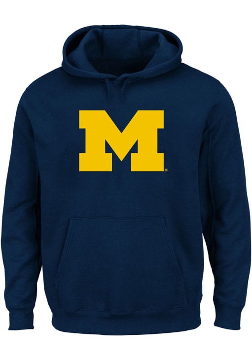Mens Blue Michigan Wolverines Primary Logo Big and Tall Hooded Sweatshirt