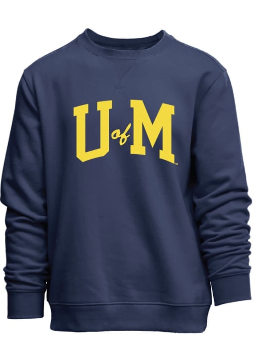 Size Chart for Mens Navy Blue Michigan Wolverines UM Crew Sweatshirt