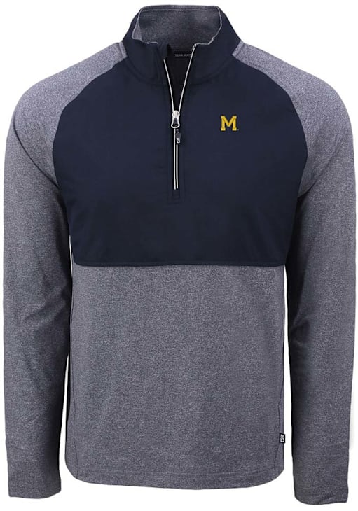 Embrace the warmth and showcase your Wolverines pride with our Michigan Wolverines Long Sleeve Qtr Zip Pullover. This Mens Blue Vault Adapt Eco Hybrid Long Sleeve Pullover offers a wind resistant recycled shell for the perfect combination of comfort and style. Elevate your everyday look with this must-have Michigan Wolverines Long Sleeve Qtr Zip Pullover.