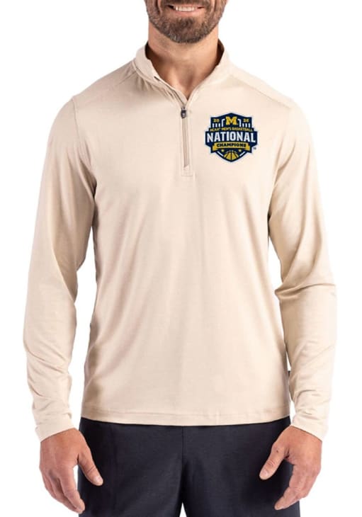 Embrace the warmth and showcase your Wolverines pride with our Michigan Wolverines Long Sleeve Qtr Zip Pullover. This Mens Oatmeal 2026 MBB Champions Coastline Long Sleeve Pullover offers a team logo on left chest for the perfect combination of comfort and style. Elevate your everyday look with this must-have Michigan Wolverines Long Sleeve Qtr Zip Pullover.