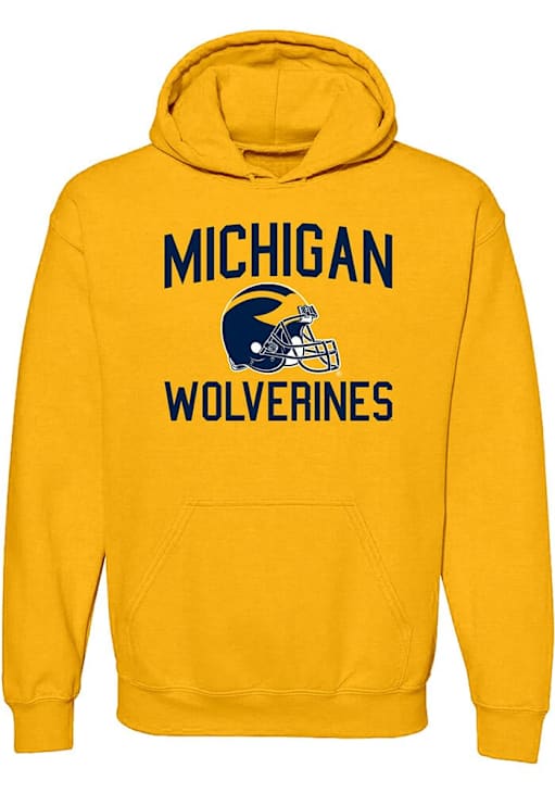 Embrace your Wolverines pride and showcase your team spirit with confidence in this Michigan Wolverines Long Sleeve Hoodie! Stay warm and stylish with the Michigan Mens Yellow Arch Name Helmet Hooded Sweatshirt. Designed with team graphic on front, this Wolverines Long Sleeve Hoodie is a must-have for dedicated fans.