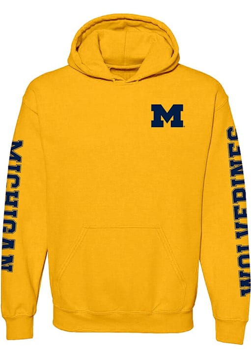 Mens Yellow Michigan Wolverines Double Sleeve Print Hooded Sweatshirt