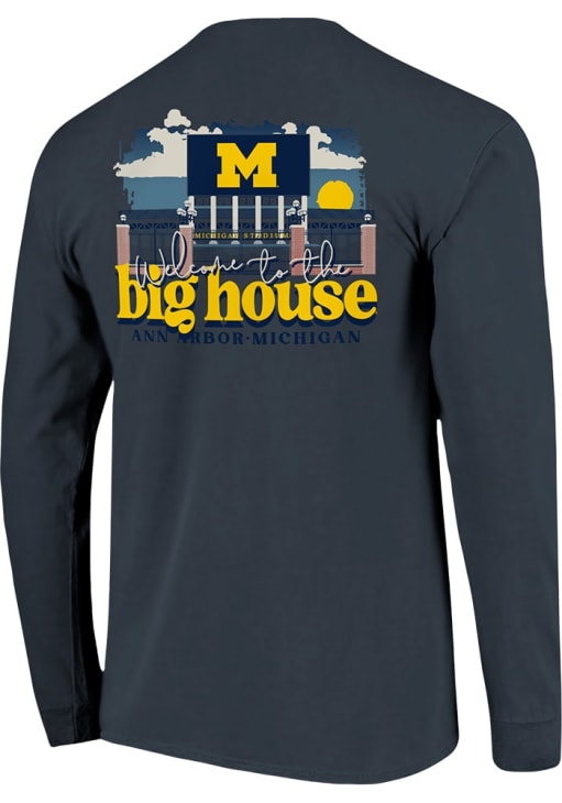 Show your Michigan Wolverines spirit in this Michigan Blue T Shirt! This Michigan 0 Stadium Gates Long Sleeve T Shirt makes a great layer for cooler nights cheering on the Wolverines. Featuring a screen print team graphic on left chest and across back, this Michigan Wolverines Long Sleeve Tee is an essential addition for every fan. Go Michigan!