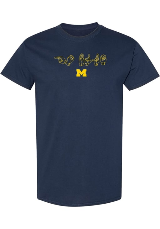 Display your team spirit with this remarkable Michigan Wolverines Navy Blue ASL Go Blue Short Sleeve T Shirt! The Michigan Short Sleeve Tee showcases a screen print team graphic across chest that truly sets it apart. Stand out from the crowd and proudly declare your allegiance to the Wolverines with this exceptional Navy Blue Michigan T Shirt. Go Michigan!