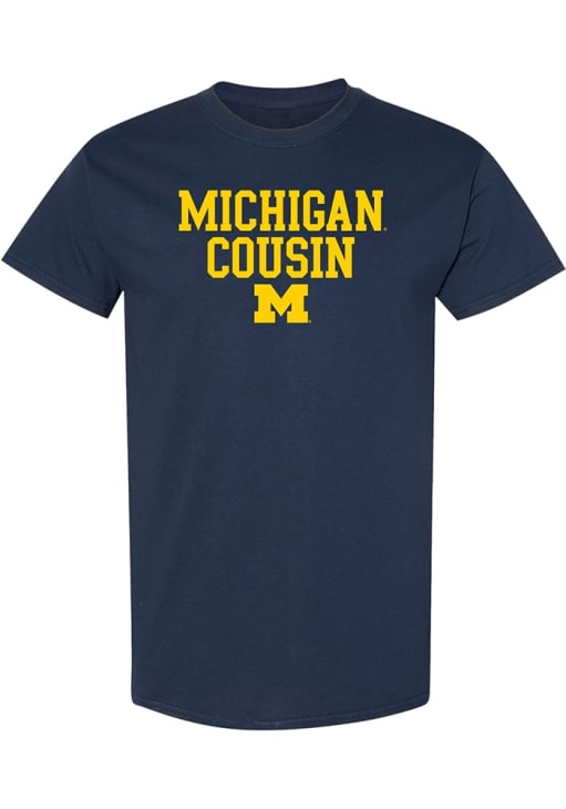Display your team spirit with this remarkable Michigan Wolverines Navy Blue Basic Block Cousin Short Sleeve T Shirt! The Michigan Short Sleeve Tee showcases a screen print team graphic across chest that truly sets it apart. Stand out from the crowd and proudly declare your allegiance to the Wolverines with this exceptional Navy Blue Michigan T Shirt. Go Michigan!