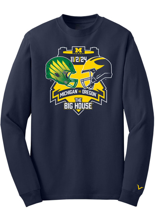 Show your Michigan Wolverines spirit in this Michigan Blue T Shirt! This Michigan Big House Long Sleeve T Shirt makes a great layer for cooler nights cheering on the Wolverines. Featuring a screen print team graphic across chest, this Michigan Wolverines Long Sleeve Tee is an essential addition for every fan. Go Michigan!