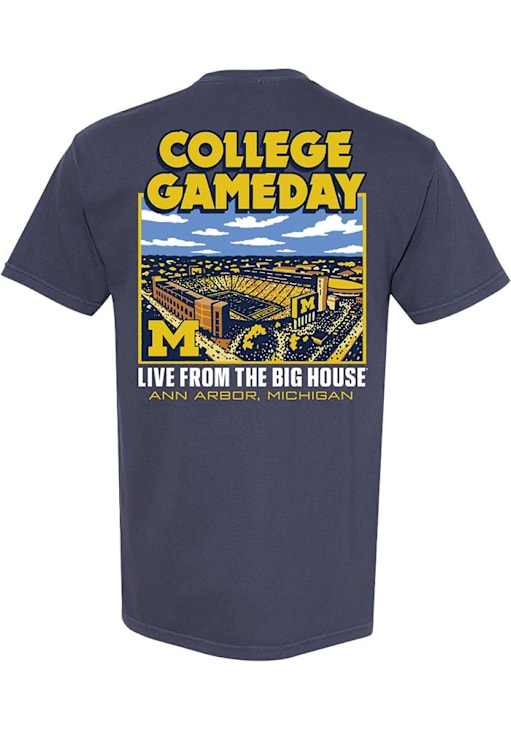 Display your team spirit with this remarkable Michigan Wolverines Navy Blue College Gameday Stadium Short Sleeve T Shirt! The Michigan Short Sleeve Tee showcases a screen print graphic on front left chest and full back that truly sets it apart. Stand out from the crowd and proudly declare your allegiance to the Wolverines with this exceptional Navy Blue Michigan T Shirt. Go Michigan!