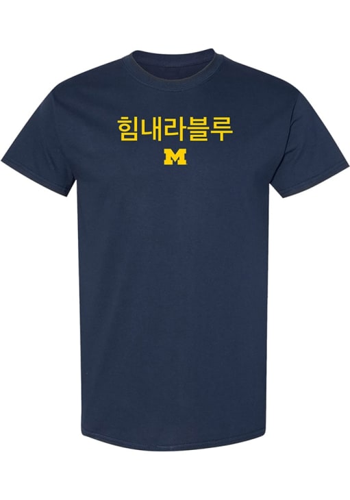 Display your team spirit with this remarkable Michigan Wolverines Navy Blue Korean Go Blue Short Sleeve T Shirt! The Michigan Short Sleeve Tee showcases a screen print team graphic across chest that truly sets it apart. Stand out from the crowd and proudly declare your allegiance to the Wolverines with this exceptional Navy Blue Michigan T Shirt. Go Michigan!