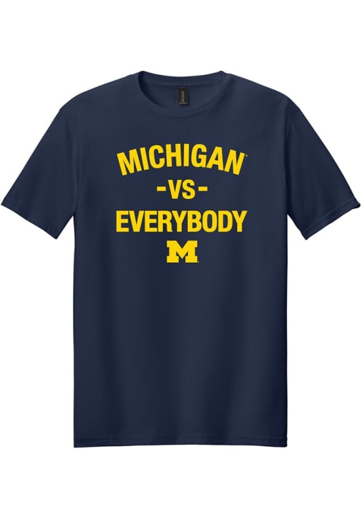 Display your team spirit with this remarkable Michigan Wolverines Navy Blue Michigan Vs. Everybody Short Sleeve T Shirt! The Michigan Short Sleeve Tee showcases a screen print team graphic across chest that truly sets it apart. Stand out from the crowd and proudly declare your allegiance to the Wolverines with this exceptional Navy Blue Michigan T Shirt. Go Michigan!