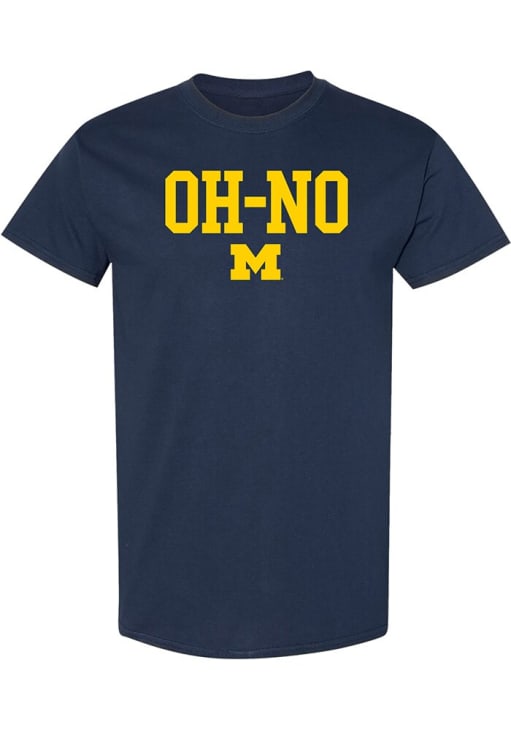 Display your team spirit with this remarkable Michigan Wolverines Navy Blue OH-NO Short Sleeve T Shirt! The Michigan Short Sleeve Tee showcases a screen print team graphic across chest that truly sets it apart. Stand out from the crowd and proudly declare your allegiance to the Wolverines with this exceptional Navy Blue Michigan T Shirt. Go Michigan!
