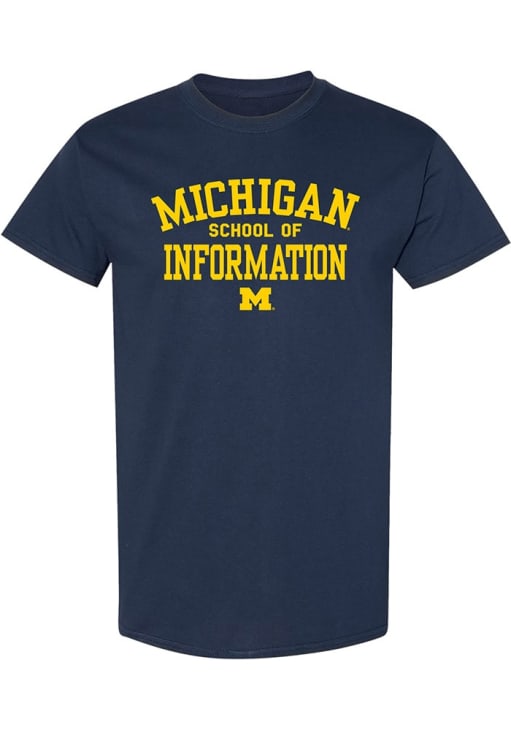 Display your team spirit with this remarkable Michigan Wolverines Navy Blue School of Information Short Sleeve T Shirt! The Michigan Short Sleeve Tee showcases a screen print team graphic across chest that truly sets it apart. Stand out from the crowd and proudly declare your allegiance to the Wolverines with this exceptional Navy Blue Michigan T Shirt. Go Michigan!