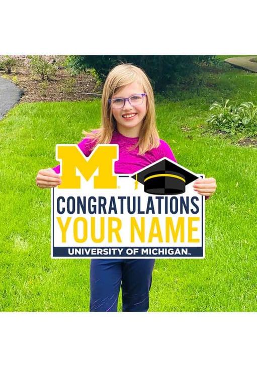 Product Details Product Details First Name ONLY.Approximatley 19"x22"Cut to Shape Weatherproof PlasticMetal Stakes IncludedFull Color PrintCustomized Graduation Sign with your name! Officially Licensed Michigan Wolverines Personalized Congratulations Grad Yard Sign will let everyone know you root for the Wolverines proudly. This Yard Sign features a weather resistant material.