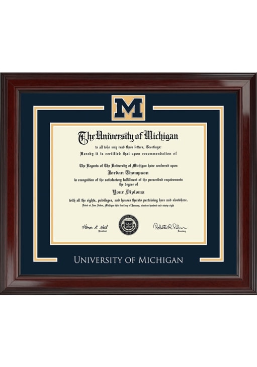 Michigan Wolverines Encore Diploma Frame is a great way to keep your Wolverines memories close. You'll love looking at your favorite Wolverines moments with this Diploma Frame, which features a showcase for your University diploma in a USA-made frame. Overall Size 19.5"w x 17"h. Go Michigan!
