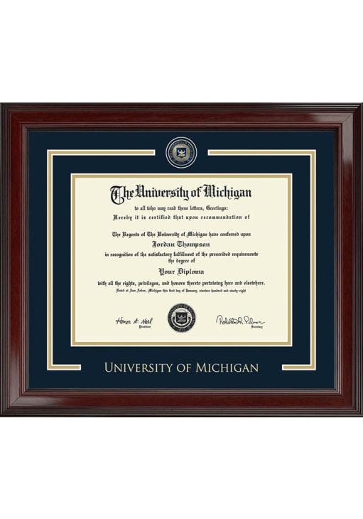 Michigan Wolverines Showcase Diploma Frame is a great way to keep your Wolverines memories close. You'll love looking at your favorite Wolverines moments with this Diploma Frame, which features a showcase for your University diploma in a USA-made frame. Overall Size 19.5"w x 17"h. Go Michigan!