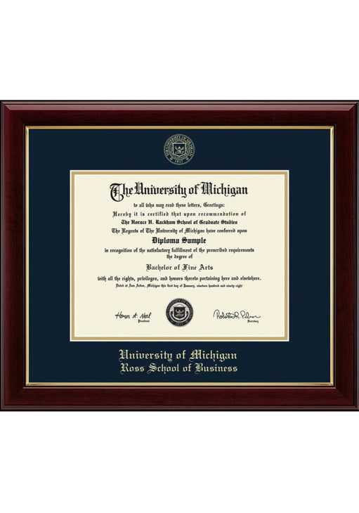 Michigan Wolverines Gallery Design Diploma Frame is a great way to keep your Wolverines memories close. You'll love looking at your favorite Wolverines moments with this Diploma Frame, which features a showcase for your University diploma in a USA-made frame. Overall Size 19"w x 16.5"h. Go Michigan!