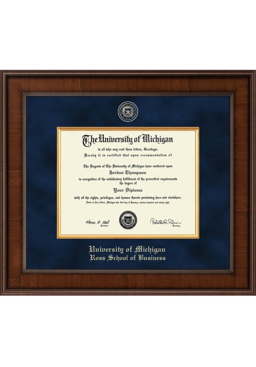 Michigan Wolverines Masterpiece Diploma Frame is a great way to keep your Wolverines memories close. You'll love looking at your favorite Wolverines moments with this Diploma Frame, which features a showcase for your University diploma in a USA-made frame. Overall Size 20.8"w x 18.8"h. Go Michigan!