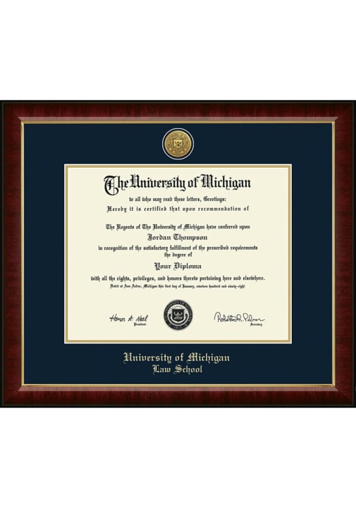 Michigan Wolverines Murano Diploma Frame is a great way to keep your Wolverines memories close. You'll love looking at your favorite Wolverines moments with this Diploma Frame, which features a showcase for your University diploma in a USA-made frame. Overall Size 22"w x 19"h. Go Michigan!