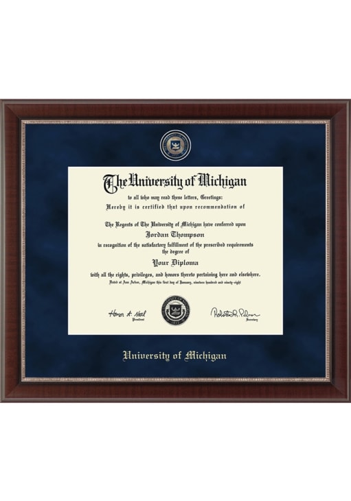 Michigan Wolverines Phd Design Diploma Frame is a great way to keep your Wolverines memories close. You'll love looking at your favorite Wolverines moments with this Diploma Frame, which features a showcase for your University diploma in a USA-made frame. Overall Size 23.3"w x 20.3"h. Go Michigan!