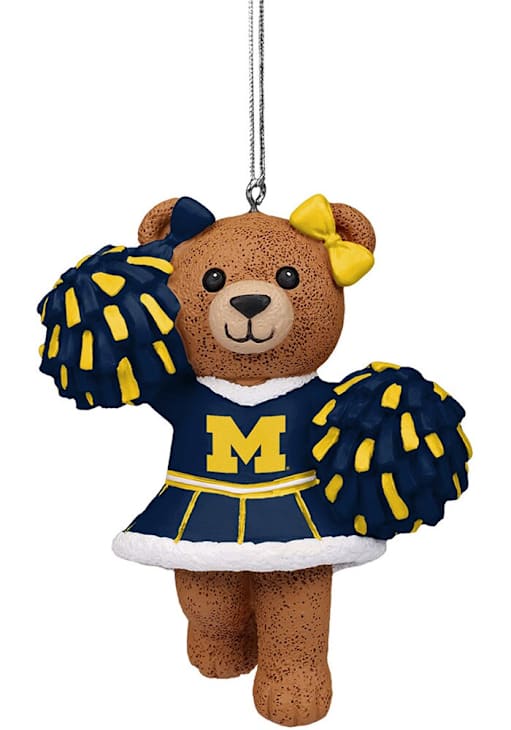 Product Details Product Details Decorate your Wolverines tree this holiday season with this Michigan Wolverines Resin Cheer Bear Ornament. Add Michigan features to your holiday cheer. This Ornament features a team logo with team colors. Go Michigan!