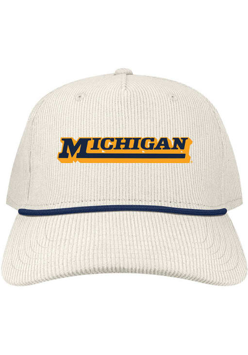 Product Details Product Details L2 Roadie CorduroyFront embroidered team logoRope across visor5 panel designBack snap plastic closurePolyesterCurved BillLow CrownStructuredWipe clean with cloth or cleaning kitImported Officially Licensed This Ivory Wolverines Adjustable Hat features a front embroidered team logo.