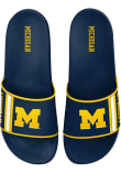 Product Details Product Details Show Wolverines support when you're on the go with these awesome Michigan Wolverines Stripe Molded Mens Slides from Rally House! With a team logo with team colors, there's no doubt you'll enjoy wearing your new Slides.