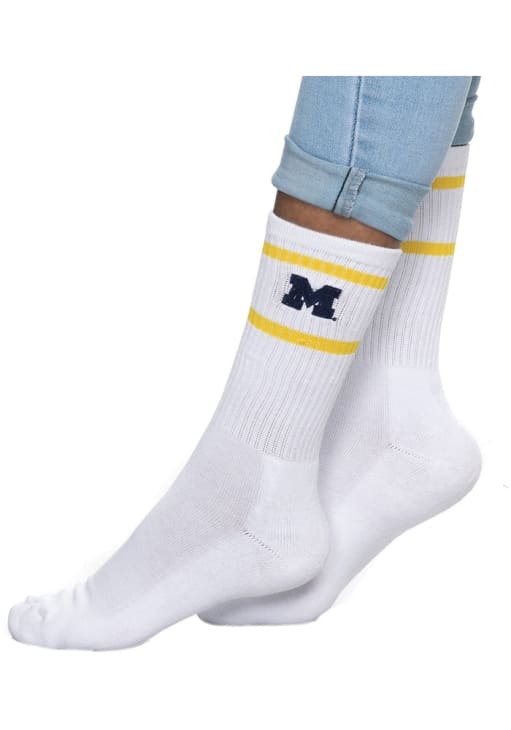 Product Details Product Details Embroidered team logo on top of sockTight knit with team color stripesOne size fits mostPerfect for game day! Officially Licensed Your outfit will only get better with these Michigan Wolverines Stripe Womens Crew Socks from Rally House! Display your Wolverines loyalty with these Crew Socks that feature a team logo and team color.