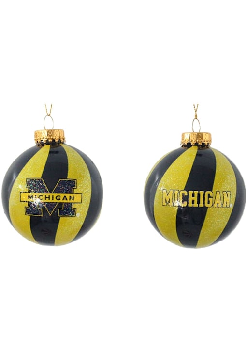 Product Details Product Details Decorate your Wolverines tree this holiday season with this Michigan Wolverines Striped Glitter Ball Ornament. Add Michigan features to your holiday cheer. This Ornament features a team logo. Go Michigan!