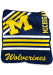 - Oversized logo design with striped features