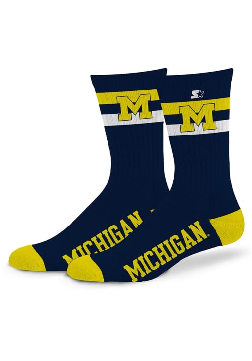 Product Details Product Details Rally House has the perfect Michigan Wolverines Team Color Two Stripe Mens Crew Socks to take your Wolverines fandom to the next level! You'll be glad to wear these Crew Socks that feature a team color with two stripe design.