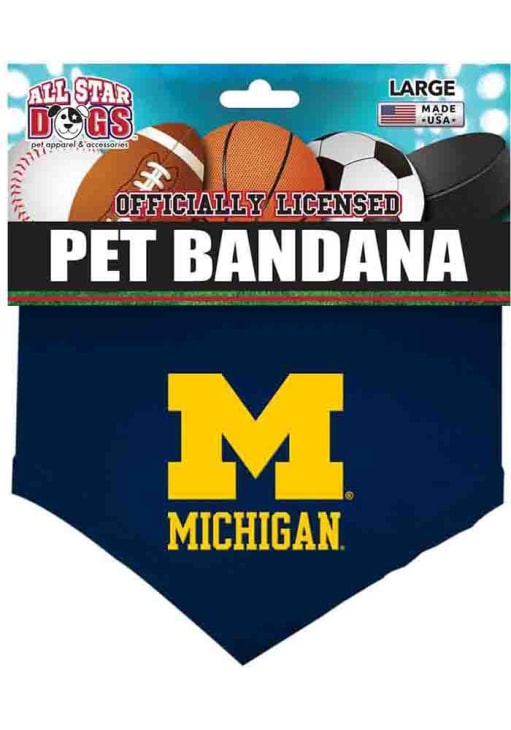 Product Details Product Details Small - neck is up to 22"Large - neck is up to 30"Embroidered team logoCan be tied or worn with collar running through bandana openingCottonUSA Officially Licensed This Michigan Wolverines Team Logo Pet Bandana is a great way to get your furry friend ready for the big game. This Pet Bandana features a team logos.