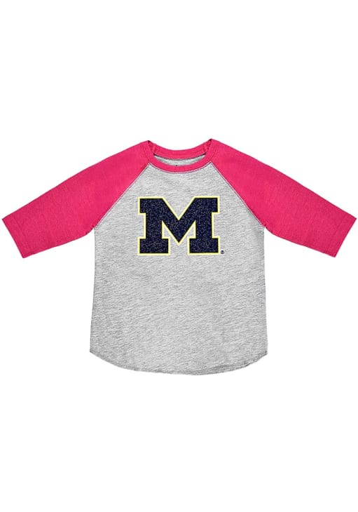 Show your style at school in this Toddler Girls Pink Michigan Wolverines Sparkle T Shirt! This Long Sleeve Tee features a team logo in glitter. You'll be cozy and comfortable head to the game or class with the Wolverines Toddler Girls Michigan T Shirt.