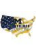 Team logo and colors stylized over a USA cutout to look like a waving flag