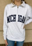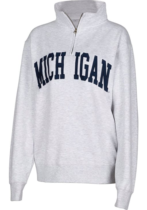 Embrace the warmth and showcase your Wolverines pride with our Michigan Wolverines Long Sleeve Qtr Zip. This Womens Ash Sport Long Sleeve Pullover offers a applique team name on center chest for the perfect combination of comfort and style. Elevate your everyday look with this must-have Michigan Wolverines Long Sleeve Qtr Zip.