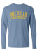 Show your Michigan Wolverines spirit in this Michigan Blue T-Shirt! This Michigan Classic Arch Long Sleeve T-Shirt makes a great layer for cooler nights cheering on the Wolverines. Featuring a center front arched screen print team name, this Michigan Wolverines Long Sleeve LS Tee is an essential addition for every fan. Go Michigan!