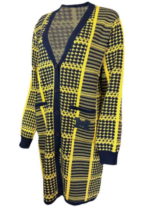 Gear up for the ultimate game day experience with the incredible Michigan Wolverines Womens Blue Poplar Cardigan! This Wolverines Long Sleeve Top features a embroidered team logo on left chest. Stay cozy and comfortable throughout the game with this high-quality Womens Michigan Wolverines Cardigan.