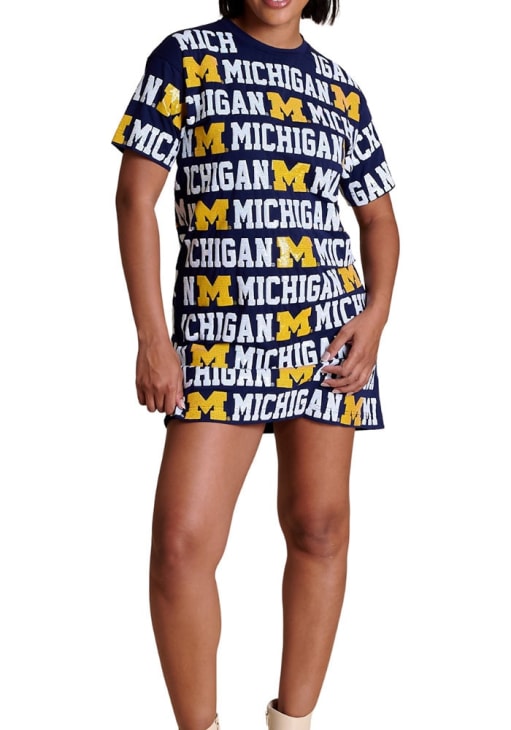 Show off your support with this Wolverines Womens Dress. Featuring a sequin team name and team logo all over, this Michigan Wolverines Blue Dress is the perfect way to show your style and Michigan Wolverines pride.
