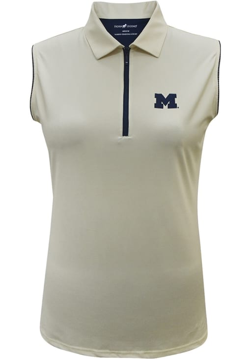Elevate your tailgating style with this adorable Michigan Wolverines Womens Polo Shirt! Stay cool and fashionable with our Gold Bird's Eye Stripe Sleeveless Shirt. Discover the unique features of this Michigan Polo Shirt that will surely catch your eye.