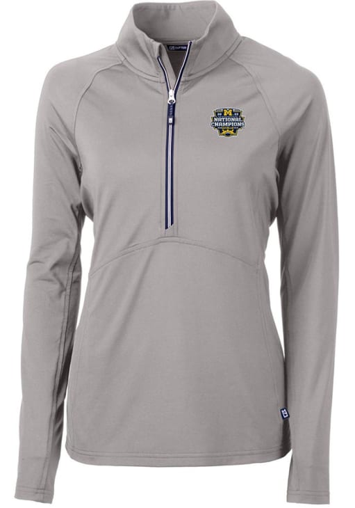 Embrace the warmth and showcase your Wolverines pride with our Michigan Wolverines Long Sleeve Qtr Zip. This Womens Grey 2023 College Football National Champions Adapt Eco Long Sleeve Pullover offers a lightweight brushed back fleece for the perfect combination of comfort and style. Elevate your everyday look with this must-have Michigan Wolverines Long Sleeve Qtr Zip.